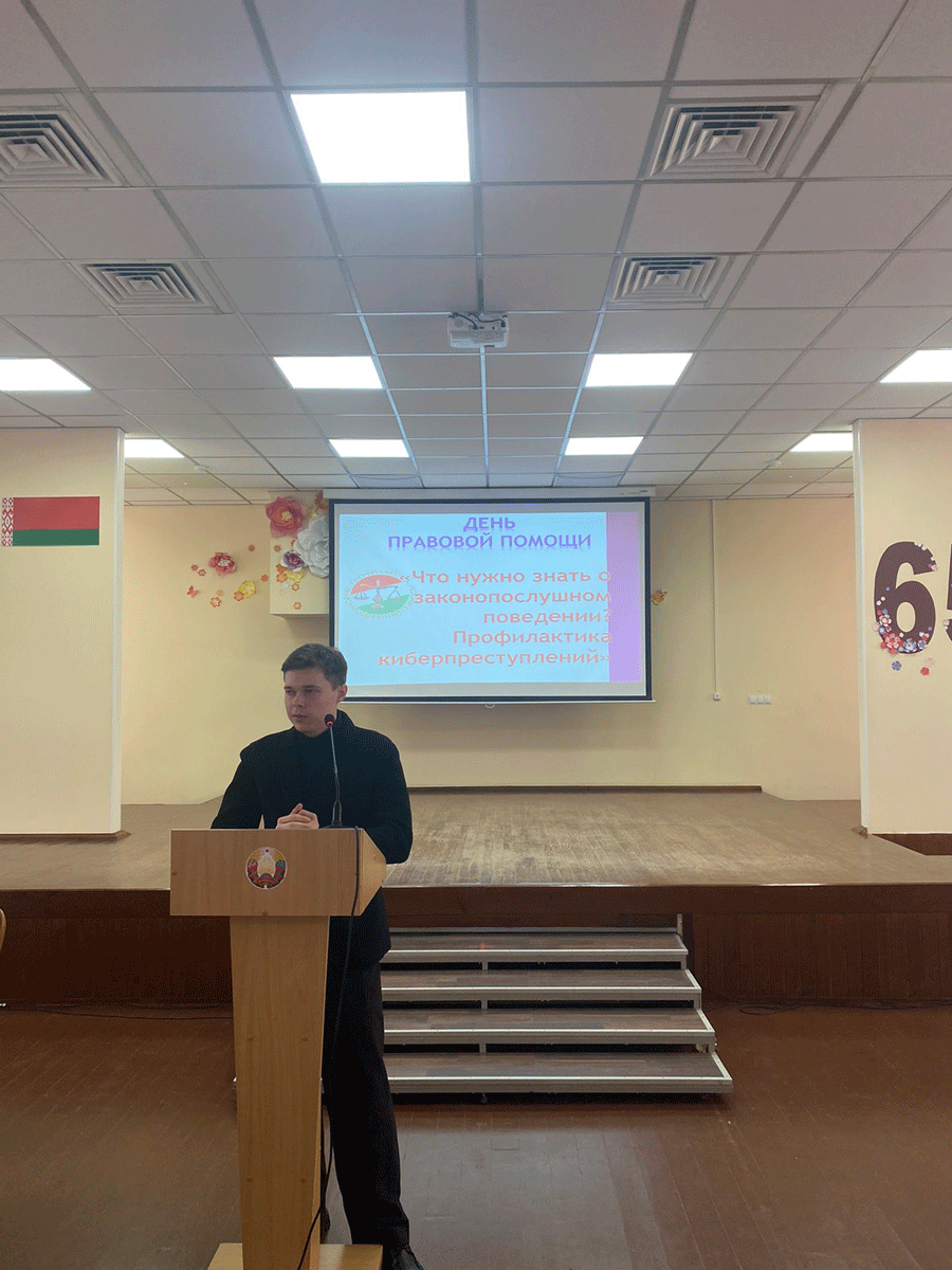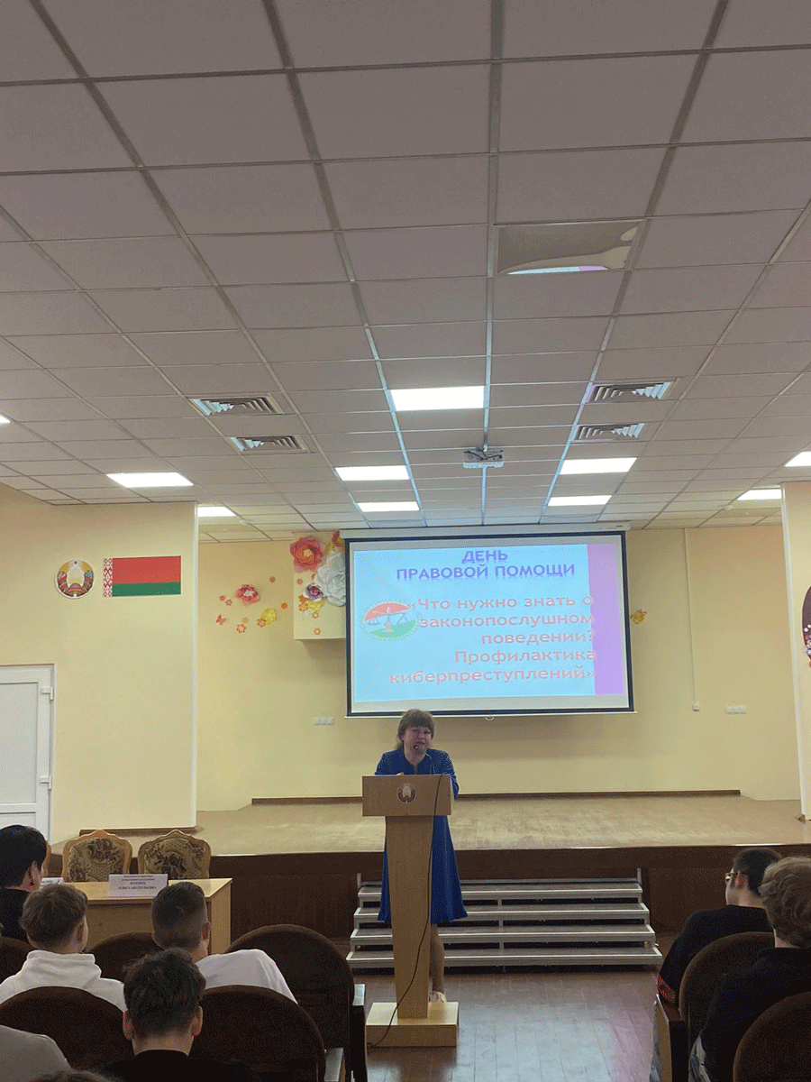 13 ноября 2025 года в УО «БГКЛП им. В.Е. Чернышева» для обучающихся проводился день правовой помощи на тему «Что нужно знать о законопослушном поведении? Профилактика киберпреступлений» с участием оперуполномоченного отделения по противодействию киберпреступности (ОПК) Барановичского ГОВД Доменикана Александра Александровича и старшего инспектора КДН Барановичского горисполкома Бугровой Виктории Валерьевны.